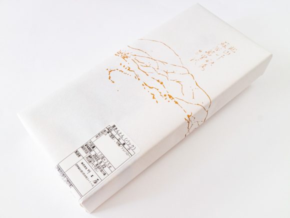 紙袋から取り出すと、シンプルな白の包装紙で贈り物に適していますよ。