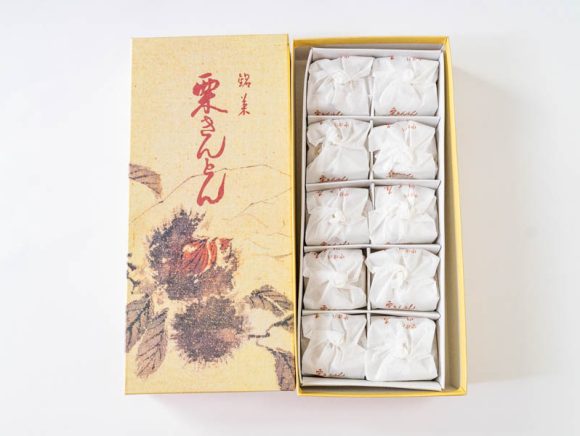 包装紙を開くと「栗きんとん」の文字と栗が描かれた箱が出てきました。