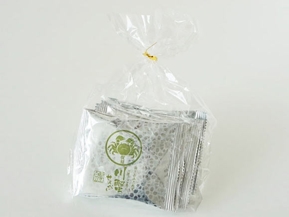 川蟹せんべいは、コンパクトな袋入りと、贈答用向きの箱入りがあります。