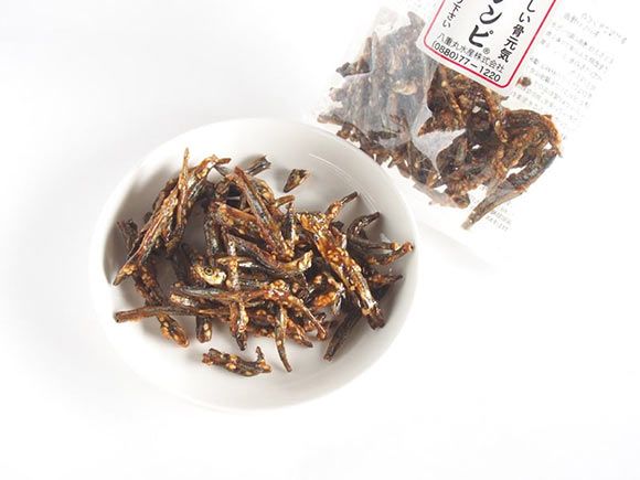 キビナゴを甘辛く煮て、普段のおかずとして食べられていたものを、美味しいお菓子に仕上げました。