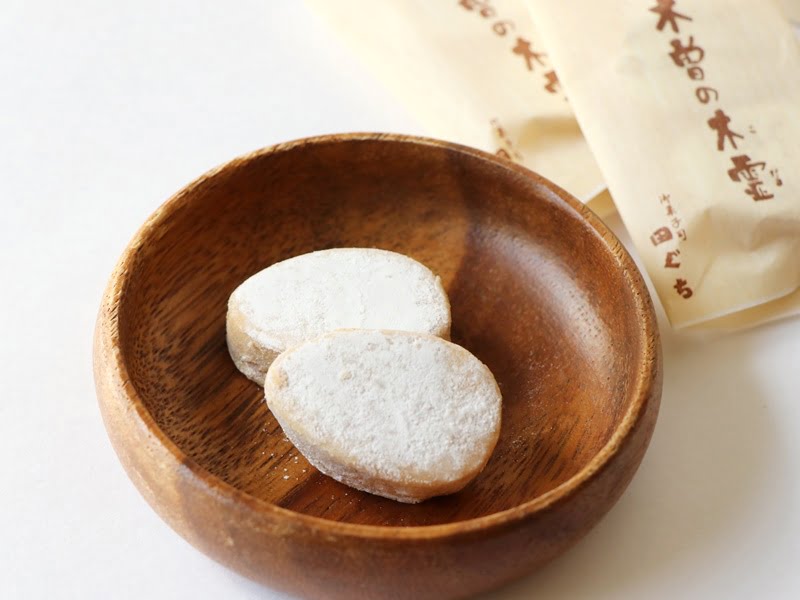 卵のような、葉っぱのような、コロンと丸みを帯びたかたちの木曽の木霊は、表面に粉砂糖がまぶされており、ぎゅっとつまむと崩れてしまいそうな柔らかさです。