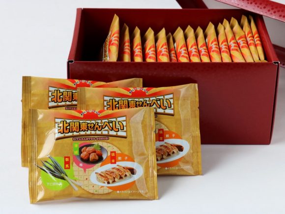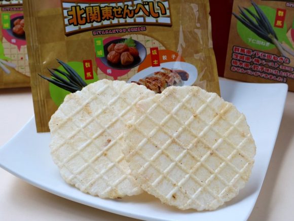 「北関東せんべい」は、北関東の3県(群馬県・茨城県・栃木県)の名産品をつかってつくられた薄焼きのおせんべい。