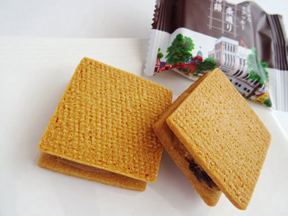 濃厚なキャラメルクリームの中にはフレッシュなレーズンが入っており、しっかりとした厚焼きのクッキーでサンドしたお菓子です。