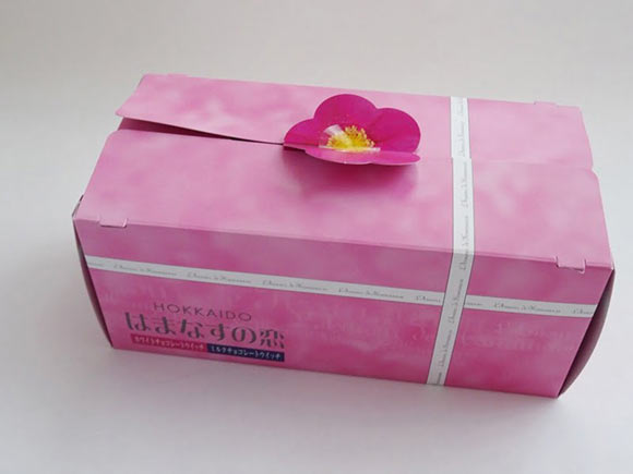 はまなすの恋の箱の上部には、かわいいピンクのはまなすの花がついていて目を引きます。