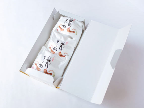 パッケージにはお菓子の名前と同じくふっくらとしたスズメが遊ぶ姿が描かれていて、とても可愛らしいです。