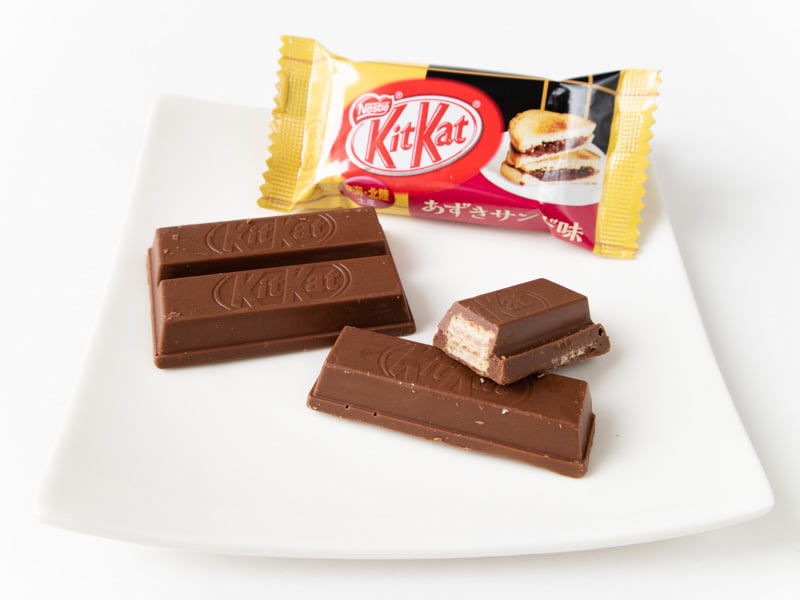 口に入れると、ミルクチョコレートとともにしっかりとしたあずきの味がします。