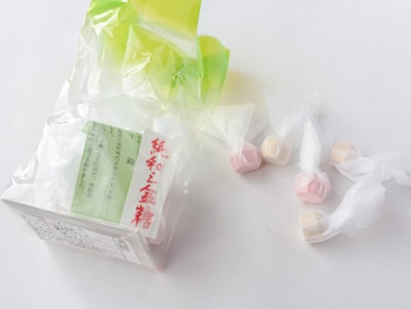 小さな包みを開けると可愛らしい鈴の形の和三盆。