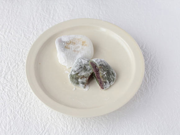 緑の餅生地はよもぎ味。濃厚なよもぎの風味を楽しむことができます。
