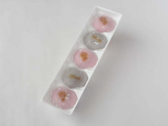 さくら味は普通のきよめ餅が2個とさくら味が3個入ったセットになっています。