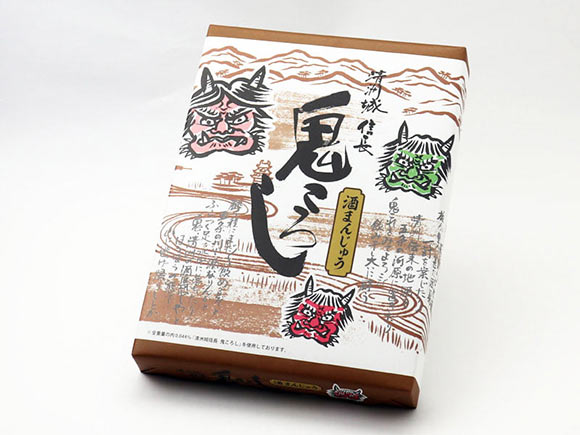 鬼の表情が入った絵本のワンシーンの様なパッケージには、12個の酒まんじゅうが入っています。