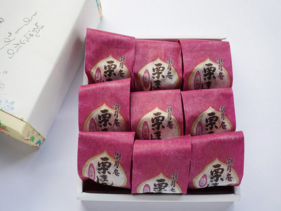 栗まんは、やわらかく煮上げた栗を、しっとりと白餡で包んだお菓子になっています。