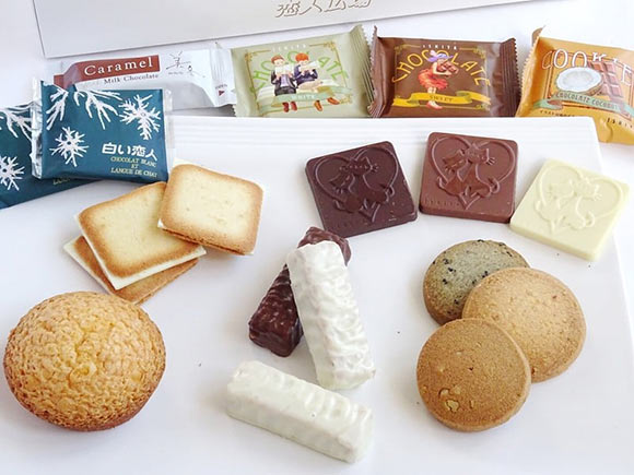 白い恋人をはじめ、クッキーやチョコレートなどのお菓子がたくさん入っていますよ。