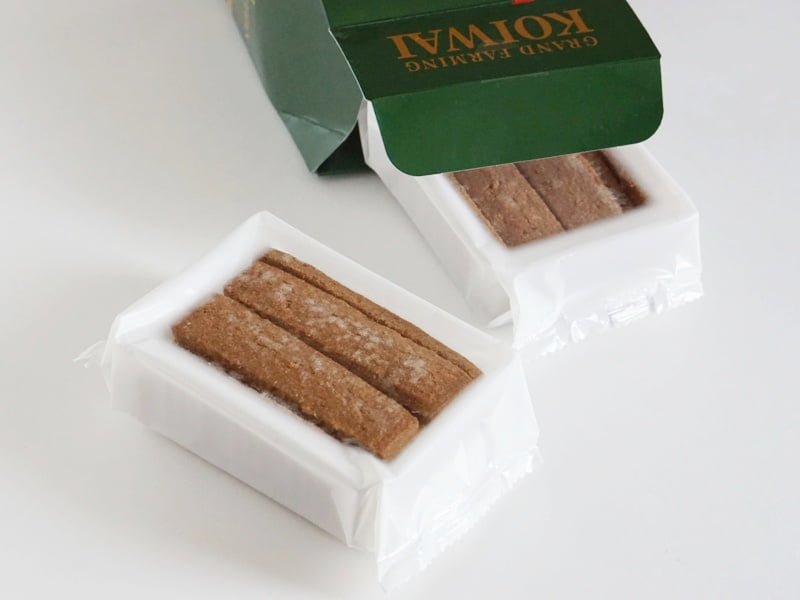 1箱に2パック入りで、クッキーは平たい長方形です。
