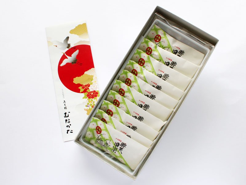 鹿児島県出水市にある、1924年創業の「ふく鶴むなかた」が手がける焼きクルミが入った餅菓子です。