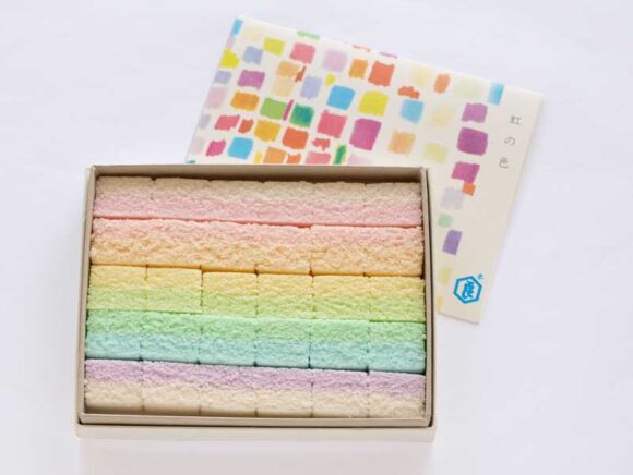 虹をイメージしたお菓子なので、とてもカラフル。