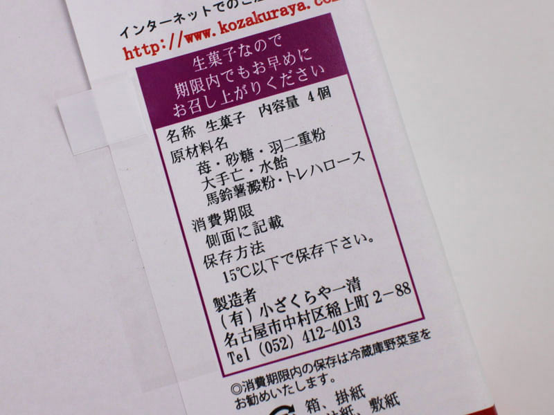 今回、小ざくらや一清 おほほっ カルテットを、名鉄百貨店 本館地下1階(スイーツステーション)で購入しました。その他で購入できるのは、小ざくらや一清の本店のみとなります。