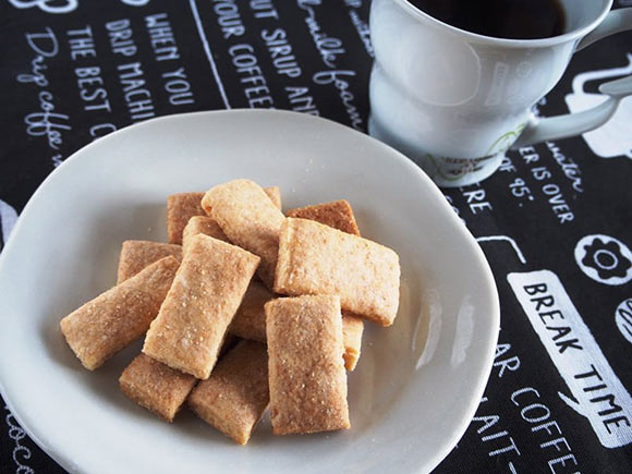 一般的なバターたっぷりのクッキーに比べて、やや固めのしっかりとした歯ごたえが特徴です。