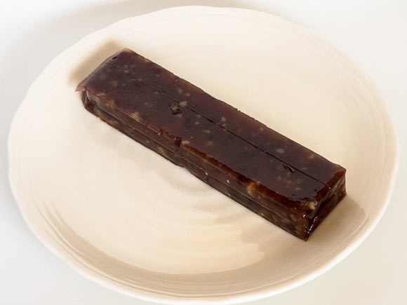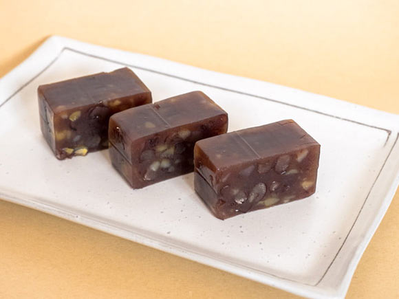 小豆色で透明感と艶のある羊羹です。