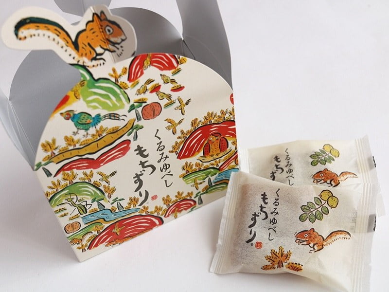 箱に描かれているのはリスやクルミ。どこか懐かしい里山のような風景の絵もかわいらしいですね。