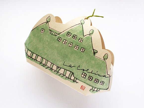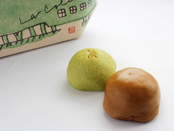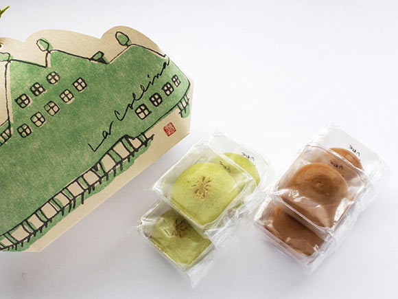 ラ コリーナのシンボルとも言える草屋根の形をしたパッケージ。その中には2種類のお饅頭が入っています。