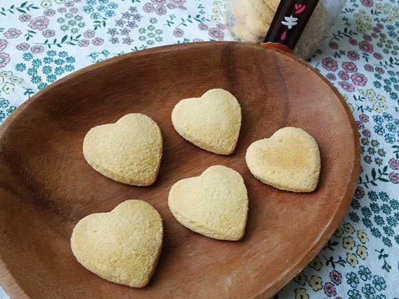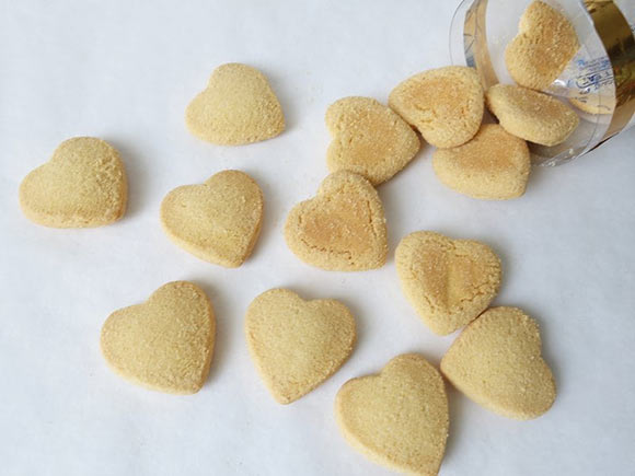 大きさは大人のひとくちサイズくらいで、ぷっくりとしたハート型。一見堅そうに見えますが、とても軽い食感でザクザク噛めます。
