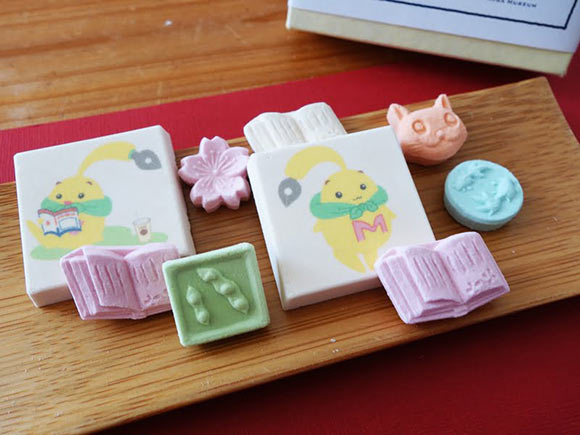 マミュー柄や、マンガミュージアムというだけあって、本の形をしたものもありました。