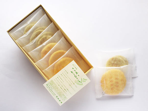 ゆっくりと噛みしめるとほんのりと豆の味がします。とてもあっさりとした上品なお煎餅ですよ。