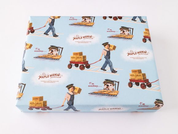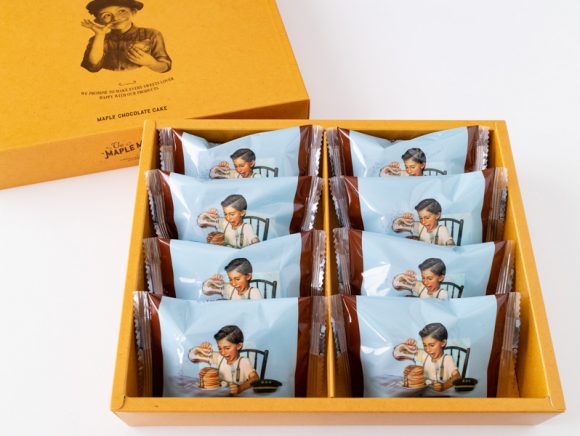 包装紙を取ると、箱には紙袋と同じデザインのメープル坊やが登場します。