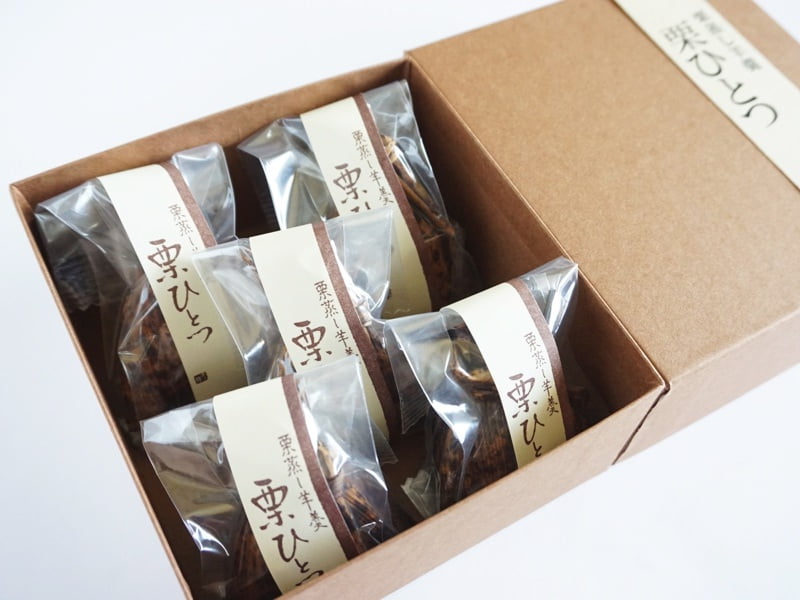 栗ひとつは、丸ごとひとつの栗を羊かんに入れたお菓子。