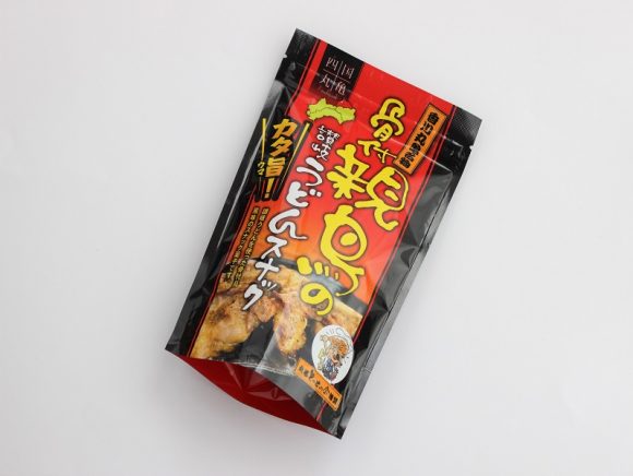 「骨付親鳥の讃岐うどんスナック」は、香川県の二大名物グルメ、讃岐うどんと骨付鳥がコラボしたスナック菓子です。