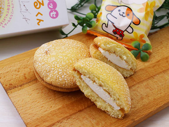 どら焼きを思わせるような見た目を洋菓子の優しい風味で楽しめるお菓子。