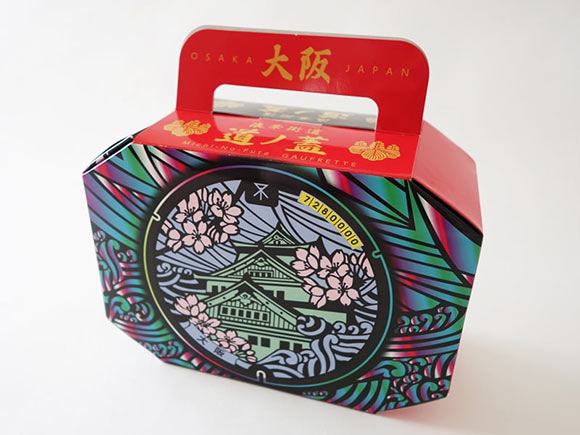 パッケージ側面には、マンホールの豆知識と大阪城の歴史が書かれていますよ。