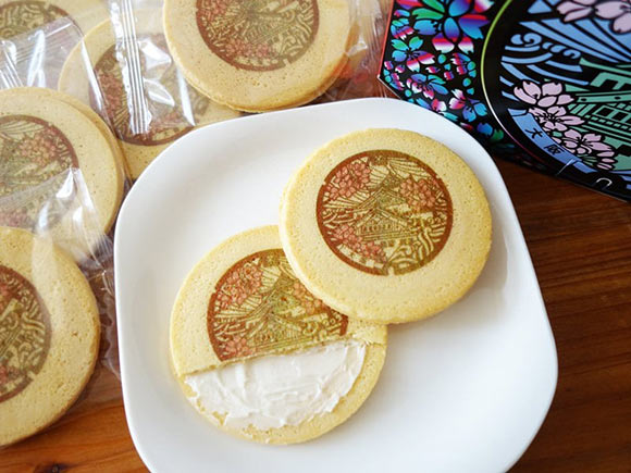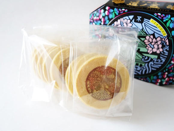 2枚の生地でクリームを挟んでいるお菓子で、生地は卵せんべいでした。甘さは控えめです。