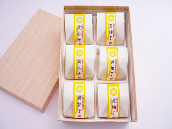 国産の柚子をふんだんに使った餡を、桃山生地で包んだお菓子です。