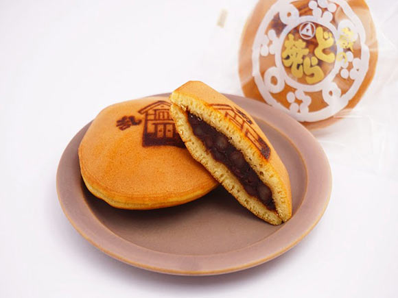 こんがりとした焼き色と、乱歩邸土蔵の焼印が印象的などら焼きです。