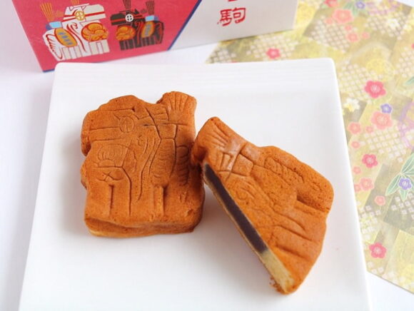 かんのやの「三春駒」は、そんな郷土人形の三春駒を型取り、餅粉を入れた焼き餅菓子。中に入っているのは、こしあんです。