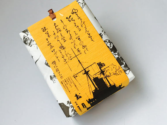 この三笠サブレーのパッケージ、よく見ると、黄色い紙には茶色い紐がついています。
