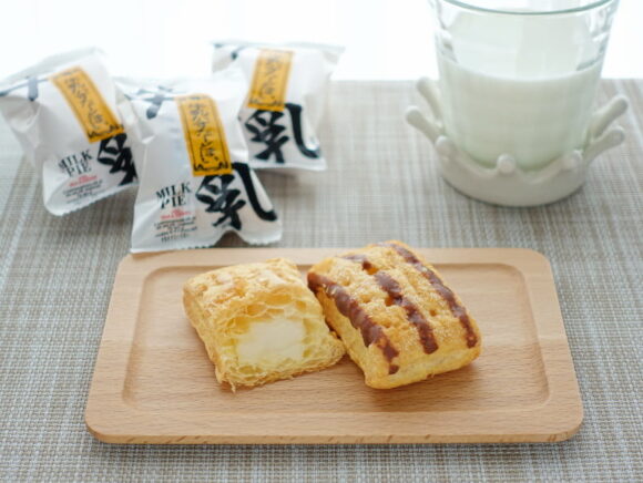 「牛乳」という文字が大きく印字され、インパクトのある「牛乳かすたーどぱい」。