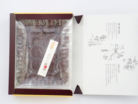 お菓子のしおりも同封されていますよ。金沢百万石あんころだけでなく、ほかのお菓子についての説明書きもあっていろいろ食べてみたくなります。