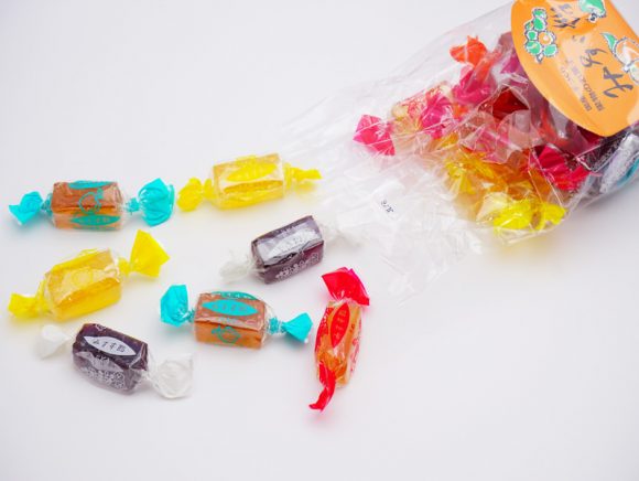 みすゞ飴は、100年以上の歴史をもつ乾燥ゼリー菓子。表面はオブラートでコーティングされているので、シャリっとした独特の食感を楽しむことができます。