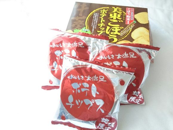おかきやお煎餅など、魅力的なおかしがありましたがその中でも気になったのがこの「美東ごぼうポテトチップス」でした。