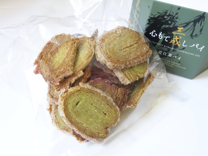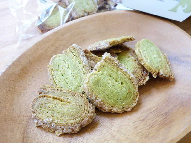 お茶の緑色をしたパイが、1袋にまとめて入っています。ひとくちサイズなので食べやすいですよ。