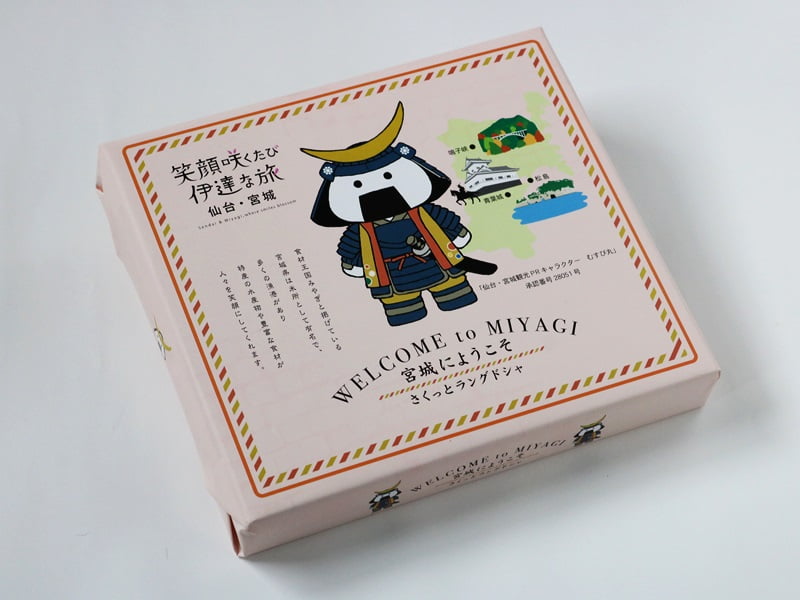 「宮城にようこそ さくっとラングドシャ」は、そんなむすび丸がプリントされたラングドシャクッキー。