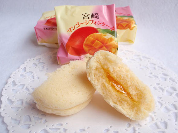 ほわほわ生地のシフォンケーキの中には宮崎県産のマンゴーで作ったピューレが入っています。
