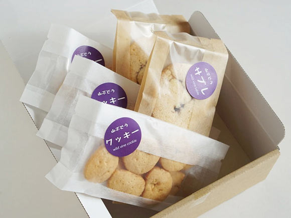 岩手県野田村産の山ぶどうピューレを使用した、クッキーとサブレの2種類入りです。