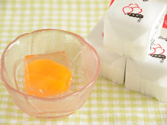 今回紹介するのは、ゼリーの中に「茂木」という品種のビワを丸ごと1つ入れたもの。