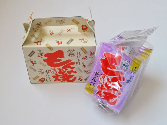東京名物もんじゃ焼きをお菓子にした「江戸下町もんじゃ焼きせんべい」。
