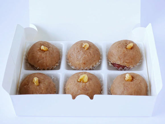 細かく砕かれたくるみと、粗く刻まれたくるみがあんに練り込まれ、くるみの香ばしさとコリコリした食感が楽しめます。