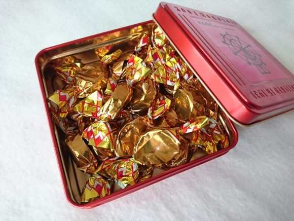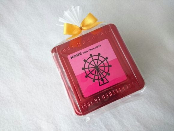 神戸ハーバーランドの観覧車を思わせるデザインのフタを開けると、きらきらの紙に包まれたチョコレートがありました。