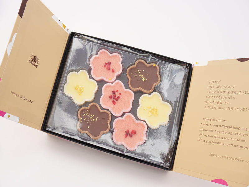 「ひとひら」は、神戸大二ブランドのひとつモロゾフと、京都のテキスタイルブランドであるSOU・SOUがコラボレーションして作ったショコラ。